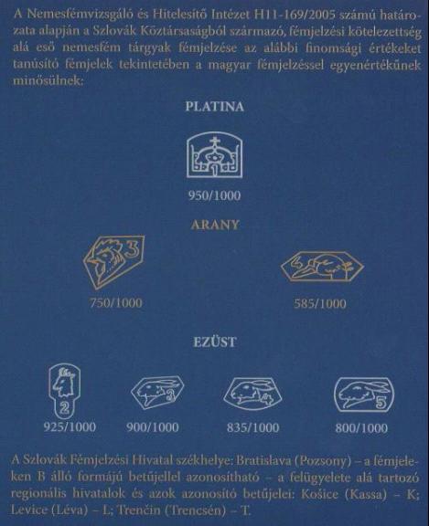 Hazánkban jelenleg az adott finomság összetételű arany ékszerek fémjelzése lehetséges: